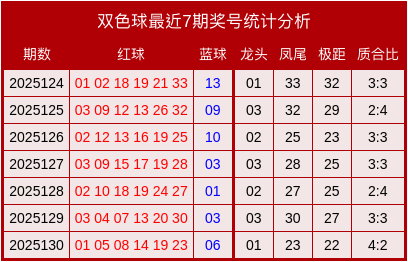 双色球最近7期奖号和数据分析表