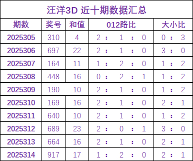 汪洋福彩3D第2025315期保举: