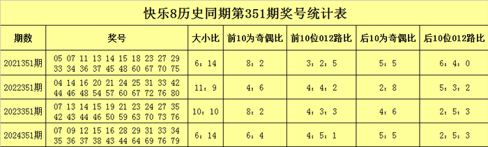 从上表不错看出,在第351期历史同时开奖中,前10为号码奇偶比为26:14,奇数号码开出频次较高,昨年同时前10位以奇数号码为主,开出了6个奇号,本年同时看好前10位奇数号码连续占优,参考号码03、13、14、17、21、24、29、31、35、42。