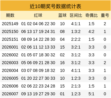 奇偶比数据:近50期奇数红球出现151个,偶数红球出现149个,奇数出现较多,近10期红球奇数出现27枚,偶数出现33枚,偶数出现较多,上期红球奇偶比为5:1,本期看意思数转热,预测奇偶比4:2。